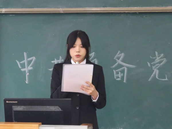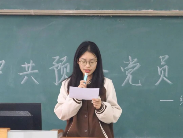 随后,预备党员夏仪菲同志汇报预备期表现。她表示,预备期内始终以党的创新理论凝心铸魂,深入研习习近平新时代中国特色社会主义思想,政治素养持续提升;学业上勤学善思,以专业积淀锤炼过硬本领;生活中严以修身,积极践行社会主义核心价值观;主动参与志愿服务与乡村振兴调研,在实践中厚植为民情怀。同时,她指出自身的不足,表示以后定加以改正,在批评与自我批评中不断完善自我,认真发挥好党员的先锋模范作用,跟随党的脚步不断前行。