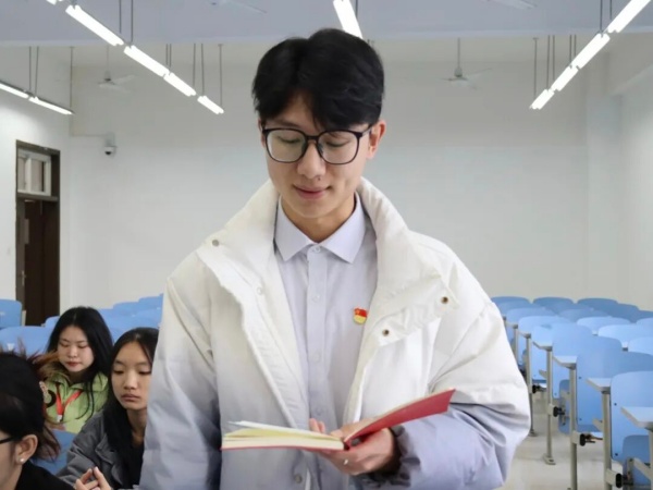 随后,邓子鹏同学强调了“中山精神”对新时代青年的现实指引。他指出,在民族复兴的新征程上,先驱的爱国情怀激励着我们要心怀家国;坚定的革命意志鼓舞着我们要勇克难关;创新的思想品质启迪着我们要与时俱进;博大的胸怀格局引导着我们要立己达人。他呼吁全体成员将这份精神内化于心、外化于行,在民族复兴的实践中展现青春作为。