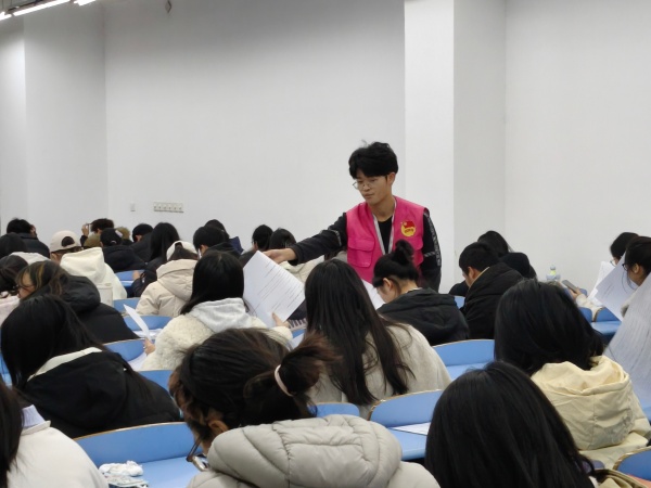 11月21日(周五)中午12:30,第六期青马班开班考试在六教303教室进行。本次开班考试以“以考促学强理论,以学笃行筑根基”为核心,聚焦马克思主义基本原理、习近平新时代中国特色社会主义思想、党的青年工作理论及学院“青马工程”培养要求等内容,旨在以考促学、以考促思、以考促行,引导学员们深化理论认知、筑牢信仰之基,考场上,学员们沉着作答、认真思索,笔下流淌的是对理想信念的坚守,字里行间彰显的是青年一代的责任与担当。