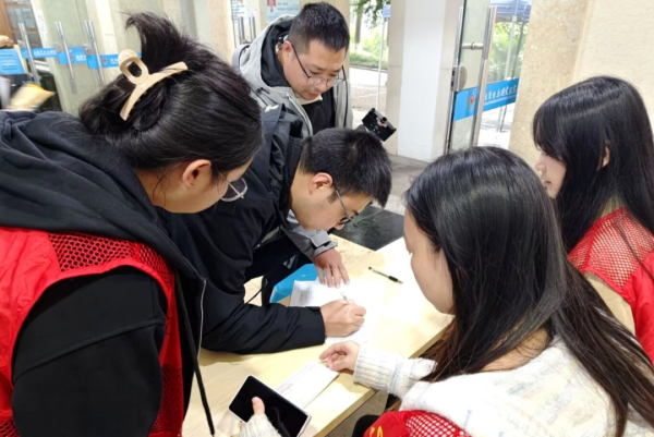 统筹布场有序,服务现场尽责。活动伊始,志愿者们在六教大厅集合,在支部书记周政霖和副书记张颖的统筹下,迅速分工、高效协作,有序布置会场、摆放桌椅,确保招聘会现场整洁有序。活动期间,志愿者们穿梭于各个展位之间,热情引导企业代表和毕业生,协助发放宣传资料,解答疑问,维持现场秩序,用实际行动诠释“奉献、友爱、互助、进步”的志愿精神,彰显新时代青年的责任意识与担当精神。