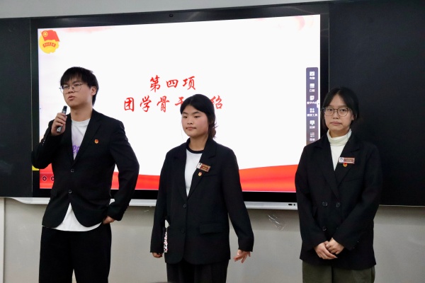 接着,骨干介绍环节,书记处、主席团成员及各部门负责人依次登台,以简洁有力的方式介绍了各自的工作职责与部门特色。他们精神饱满、表达清晰,既有对岗位职责的准确理解,也有对未来工作的务实规划。短短数分钟的展示,不仅拉近了各部门之间的距离,更让新成员感受到了团学大家庭的凝聚力与向心力,为今后工作的顺利开展营造了良好的开端。