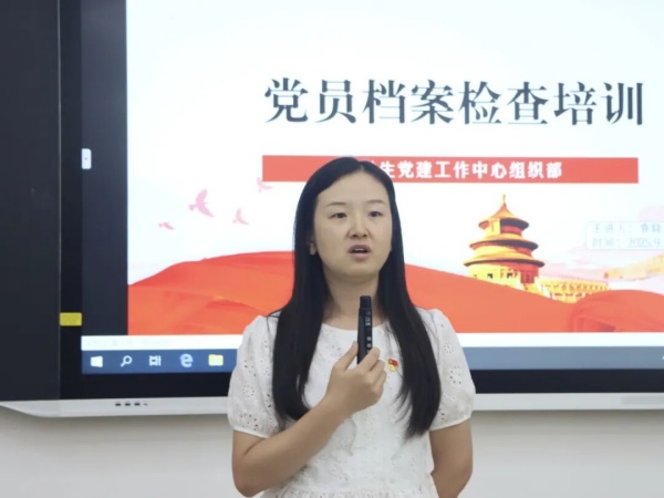 为强化党务工作队伍建设,提升党员及党务工作者党性修养与业务能力,规范党员发展流程及档案管理,9 月 15 日,经济管理学院在主教 214 教室召开党员档案检查专题培训会。各支部负责党员档案人员、党建工作站组织部成员、2025 年上半年发展的预备党员及转正党员参会,此次会议由经济管理学院党建工作站指导老师霍青兰主持,大学生党建中心袁晓琴主讲。