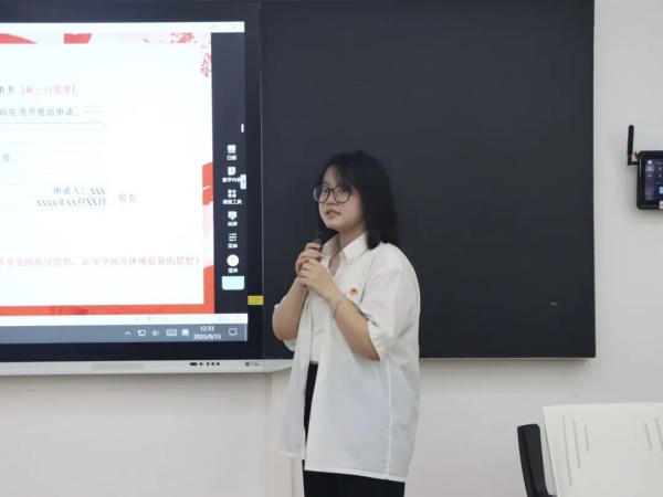 细化流程要求,强化规范建设。会议伊始,袁晓琴同志以发展党员的工作流程为切入点,深入阐述了新时代发展党员工作面临的形势与总体要求,并对发展党员过程中各类材料的填写规范作了细致解读。她强调,各党支部要牢固树立“按照党员标准,成熟一个,发展一个”的鲜明导向,严格把握发展党员工作的严肃性、规范性与准确性,自觉把思想和行动统一到学校学院决策部署上来,着力构建上下协同、各负其责、齐抓共管的工作格局。同时,她希望全体党务工作者始终把政治标准放在首位,将提升政治理论素养作为开展党务工作的基础前提,不断强化业务知识储备,认真履行岗位职责,以奋发有为的精神状态、精益求精的专业追求和严谨扎实的工作作风,切实彰显“讲政治、重公道、业务精、作风好”的党务工作者形象,充分发挥共产党员的先锋模范作用。
