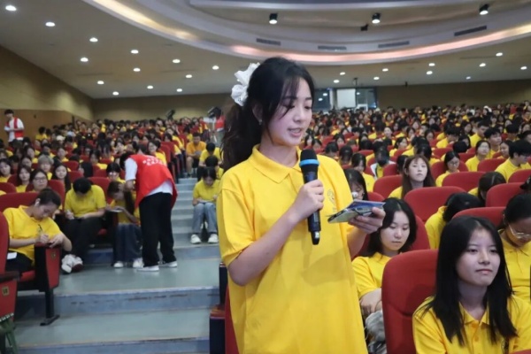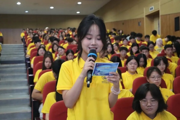 赤诚真心授心得,并肩奋进谱新篇。接着,邓诗雨学姐以温润的语调、鲜活的叙事与赤诚的真心,在现场分享她的大学成长之旅,传递出从初入校园面对陌生环境时的懵懂与迷茫,到后来熟练平衡学业与校园活动、主动投身实践的坚定蜕变。她勉励学妹学弟们以朝气绘就青春画卷,以笃实夯实成长步履,怀揣梦想奔赴人生新程。