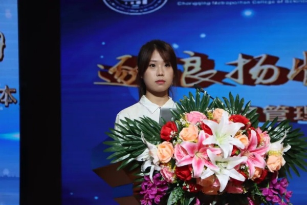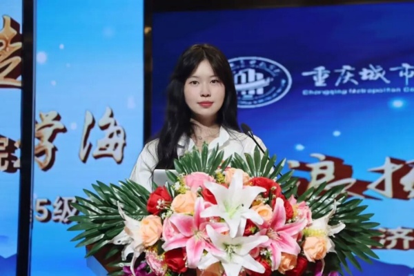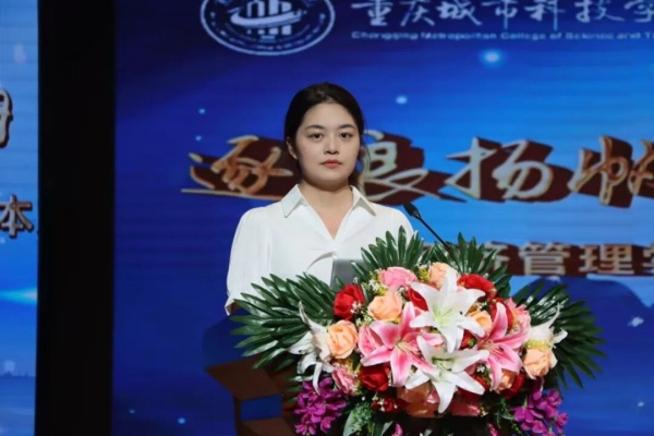 学子当怀凌云志,善践经管新担当。新生代表王梁芳珠同学上台发言。她谈道,回首高中奋斗岁月,恰似一本写满演算的错题本,每一页字迹都藏着坚持与期待;展望本科新程,作为逐梦启航的青年,应以求知若渴的热情搭建知识框架,以脚踏实地的态度夯实学习基础,以勇于尝试的勇气参与社团实践,在这片充满活力的大学沃土滋养下,补短板、拓视野,在本科成长路上不断探索,书写属于自己的青春奋斗故事与人生新章。