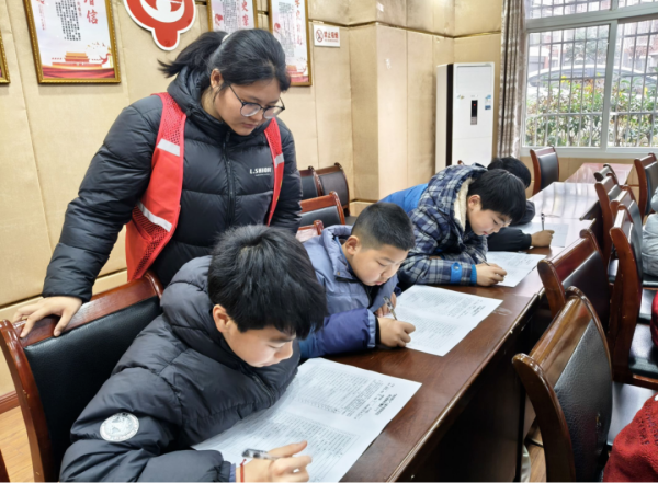 这个寒假,我以志愿者的身份参与乡镇假期公益托管服务,与孩子们一起度过了一段充实而温暖的时光。这段经历,让我体会到基层志愿服务的真正意义。活动期间,我们为孩子们安排了安全知识讲解、应急演练与八段锦练习,编织中国结、包汤圆、剪纸、写春联等活动,让大家在动手实践中感受浓浓年味与传统文化魅力。恰逢立春,我们一同学习二十四节气、生肖与时辰知识;各类趣味游戏,更是让孩子们在轻松氛围里快乐成长。看着孩子们从陌生拘谨到熟络开朗,我满是欣慰与感动。在活动的过程中,我不断磨练耐心与细心,提升组织能力与责任意识,也真正懂得了“奉献、友爱、互助、进步”的志愿精神。未来,我将继续带着这份初心与热忱,积极投身公益服务,用微光汇聚温暖,用行动传递爱心,以青年之担当,为家乡与社会贡献自己的一份力量。