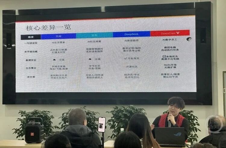 科技普及引潮流,AI智能助未来。活动不仅聚焦传统直播技能,还前瞻性地普及了AI智能体的应用。孟令冲同学向居民详细介绍了“OpenClaw”AI智能体、豆包、DeepSeek、千问等主流大模型的功能特点与区别,展示了人工智能如何辅助直播内容创作与运营。这一环节不仅提升了居民对新科技的认知,也为大家未来的数字化就业提供了更丰富的工具与思路。现场互动热烈,居民们纷纷提出后续直播中可能遇到的问题,志愿者们给予了专业解答。