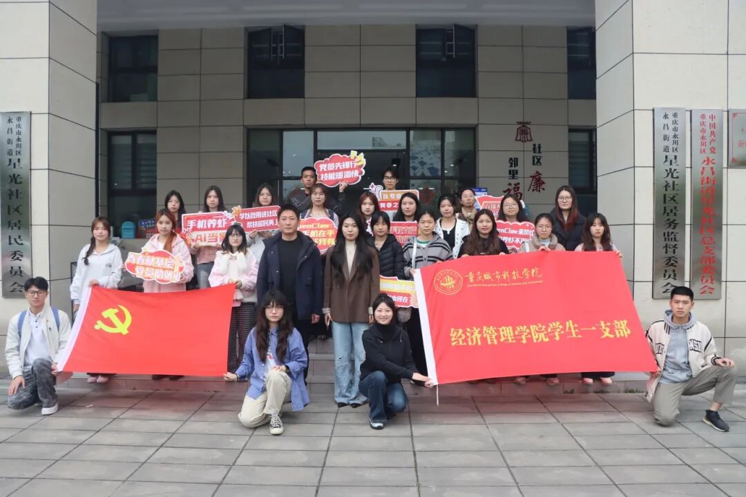 为深入贯彻党建引领精神,推动数字技能下沉基层,助力社区居民实现“家门口”就业增收,3月25日,数智经济管理学院学生第一党支部于重庆市永川区星光社区开展主题党日活动。支部书记刘强、副书记王琳、全体党员同志及入党积极分子参加。