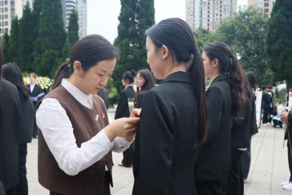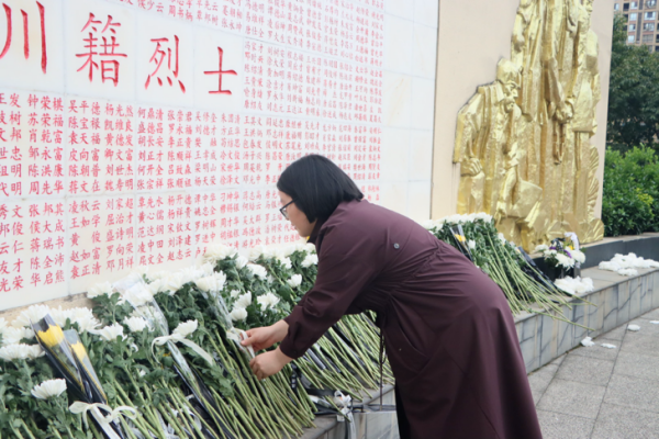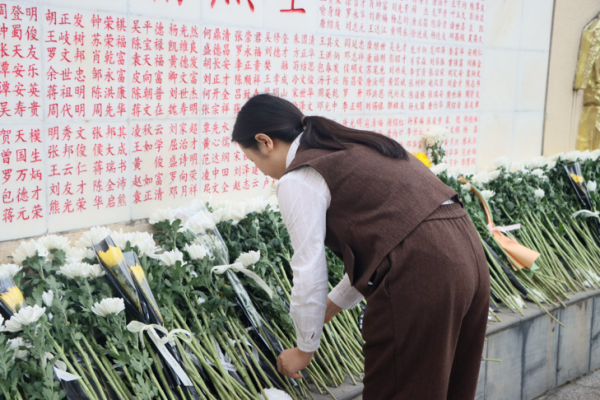 静立默哀怀先烈,敬献菊花寄哀思。仪式现场,全体人员低头默哀,时间在这一刻仿佛静止,所有人的思绪都沉浸在对革命先烈的追思之中。默哀结束后,大家手持洁白的菊花,怀着无比崇敬的心情,依次缓步走向纪念区域,将菊花轻轻摆放,以最朴素、最庄重的方式表达对先烈的缅怀与敬意,让红色基因在追思中赓续传承,从先烈精神中汲取砥砺前行的不竭力量。