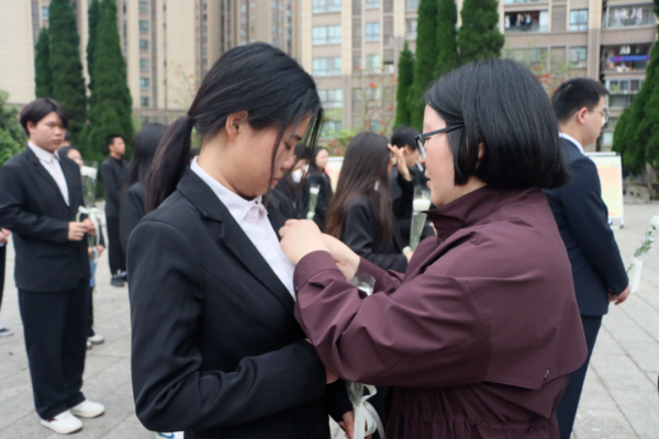 佩戴党徽明身份,传承使命铸党魂。随后,由霍青兰老师与李泽义老师为新发展党员佩戴党徽。一枚党徽不仅是党员身份的鲜明标识,更承载着责任与荣光,象征着组织的认可与嘱托,标志着新发展党员们正式肩负起党员使命。当党徽触碰到新发展党员衣襟的那一刻,就意味着从此要以党员的标准严格要求自己,在日常工作、学习与生活中时刻铭记身份,将初心与使命内化于心、外化于行,用实际行动守护这枚党徽的荣光。