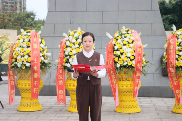 为深入学习贯彻习近平新时代中国特色社会主义思想,强化新发展党员的政治觉悟与理想信念,引导党员同志在清明时节缅怀革命先烈、传承红色基因,深刻体悟革命先辈“忠诚于党、舍生取义”的崇高精神,4月1日,数智经济管理学院党总支于重庆市永川区桂山公园革命烈士纪念园组织开展“缅怀先烈祭忠魂,铮铮誓言铸党魂”清明祭英烈暨新发展党员宣誓活动。数智经济管理学院党建工作站指导老师、新发展党员参与此次宣誓活动。