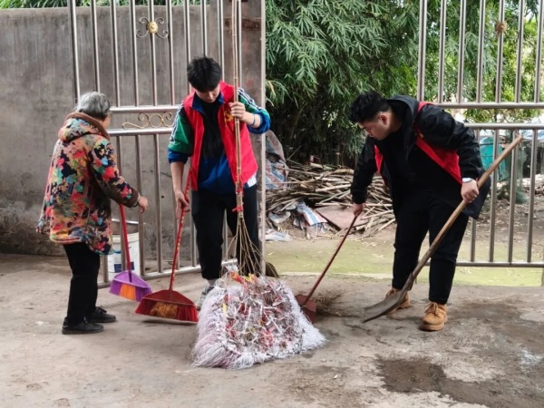 清洁服务解民忧,庭院焕新暖民心。随后,志愿者们分组深入困难群众与老年人家中开展帮扶服务。大家首先为村民送上米、油、盐等生活物资,与老人促膝交谈,详细了解其生活近况与实际困难,叮嘱老人注意身体健康、提高安全防范意识。放下慰问物资后,志愿者们拿起清洁工具,帮助老人清扫屋内卫生、整理庭院杂物,用双手改善居住环境,把贴心服务送到群众家门口。