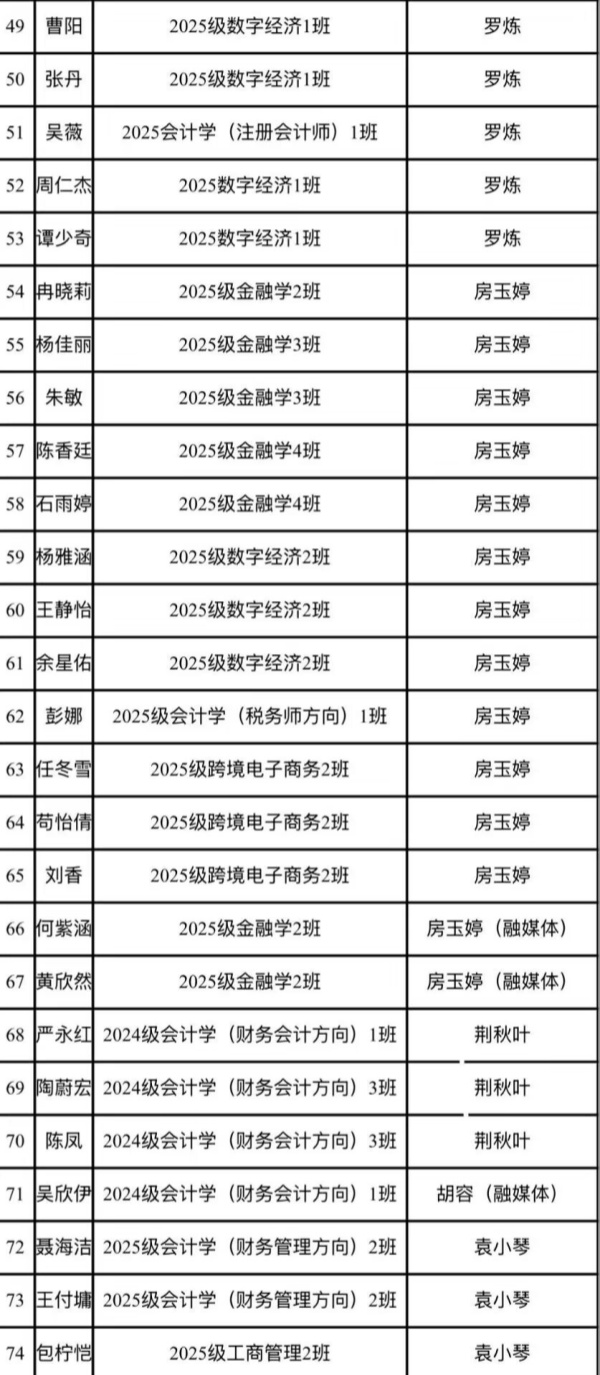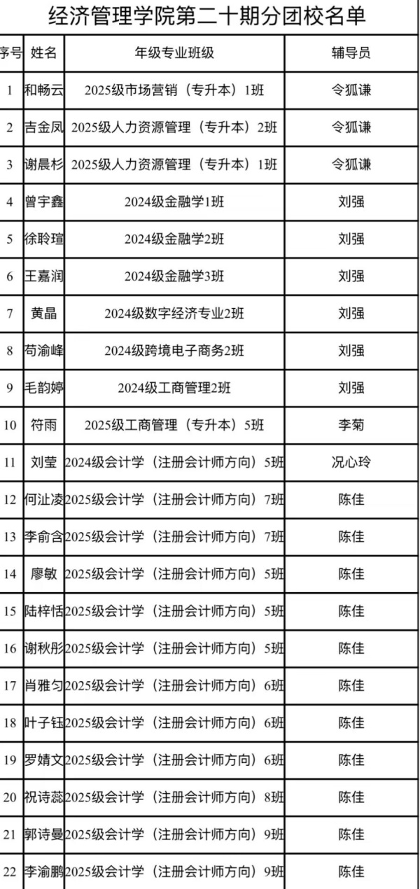 经济管理学院关于第二十期分团校学员名单的通知