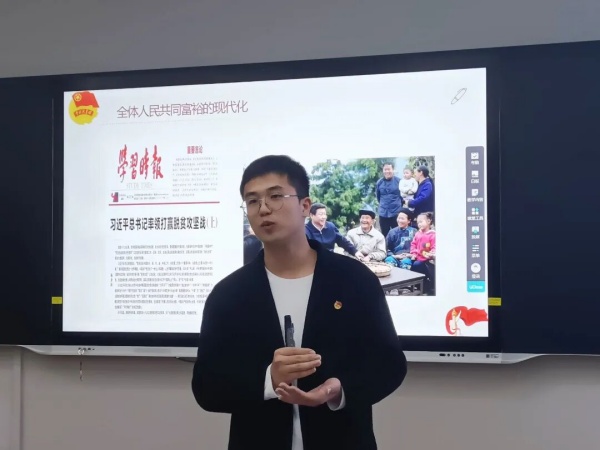 随后,朱文燚老师以“新时代与新青年”为主题,结合当代青年的现代化,讲解了青年现代化有关于国家发展。他强调,青年是中国式现代化的建设者与接班人,是推动社会进步的中坚力量。无论是在经济发展、科技创新,还是在文化创造、社会治理中,青年群体都展现出蓬勃的活力与担当。因此,他希望青年能不断奋进,在中国式现代化中发挥先锋力量,推动国家现代化治理进程。