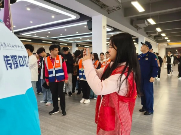 服务岗位尽责,护航消防实践。志愿者们认真负责开展现场引导服务,有序组织师生通过消防知识宣讲教育,帮助师生深化对消防安全知识的学习与认知。同时,志愿者们积极做好后勤保障,全程维护现场秩序,主动处理各类现场需求,以严谨的态度和务实的行动,为消防启动仪式平稳、有序开展提供了坚实可靠的服务支撑。