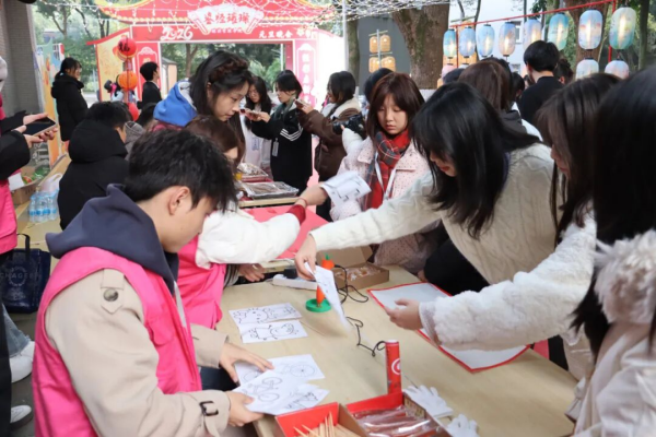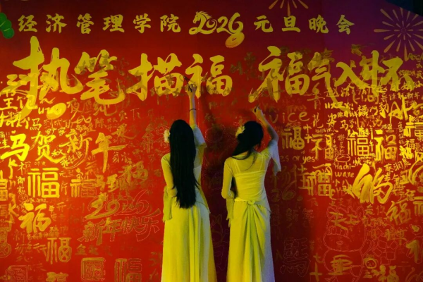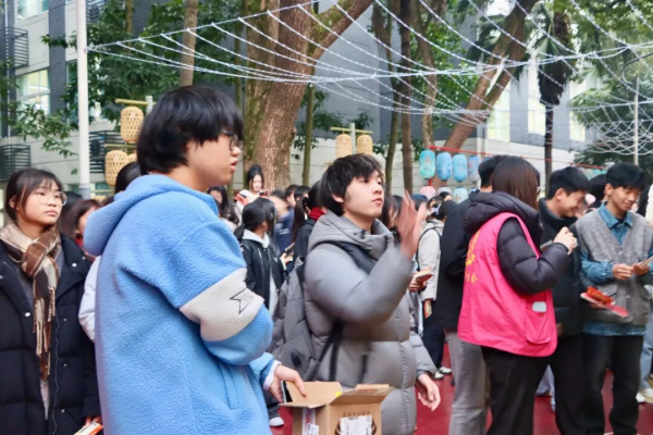 为弘扬中华优秀传统文化,营造喜庆热烈的新年氛围,12月10日下午17:00,经济管理学院于第一学术报告厅外通道精心打造了一场别开生面的“唐风迎新·盛市游园”国潮市集活动。活动以盛唐坊市文化为灵感,融合传统游戏、非遗体验与沉浸式场景,吸引了全校数百名师生踊跃参与,在欢声笑语中共同穿越千年,感受了一场独具魅力的唐风新年文化盛宴。