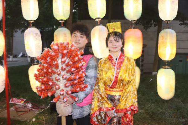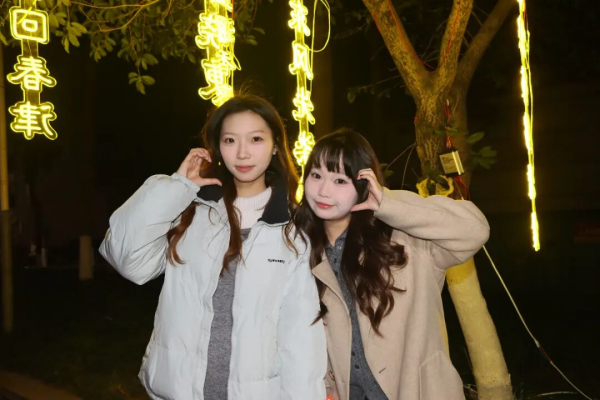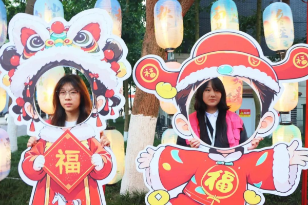 笑靥盈盈的师生们,纷纷走向被暖色灯笼环绕的“盛唐夜宴”主题打卡墙前,留下光影交错的纪念。张张笑脸、琳琅美食与斑斓灯火在此刻交汇,为这场穿越千年的唐风之旅,定格下一个温暖、鲜活而圆满的尾声。