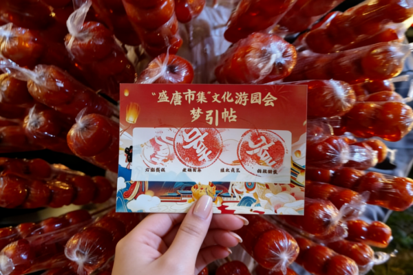 工作人员早已于灯影中含笑而立,有序发放“梦引帖”。参与者络绎不绝,或卷帖入袖,或展帖览任务,步履轻缓之间,烧烤烟火袅袅飘香,糖画甜香盈盈浮动。光影摇曳,笑语渐浓,一片熙攘温馨的盛唐夜市场景悄然铺展。