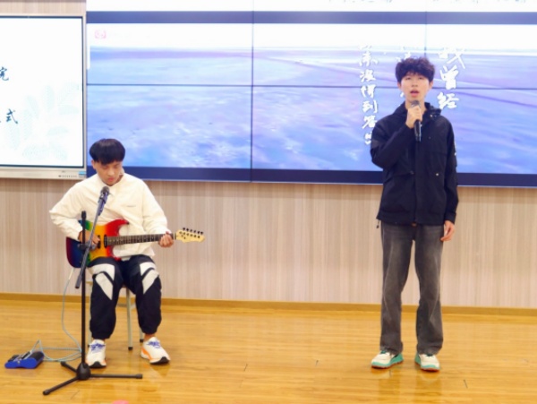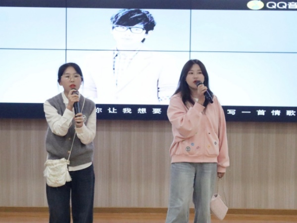 紧接着,钟沛杉同学演唱了歌曲《海阔天空》,通过这首歌,使成员们相信只要坚守梦想、不惧挫折,放荡不羁只是表面,每个人都是鲜活自由的个体。会议即将结束,一首由陈慧欣和张真花同学合唱的《有点甜》营造了温暖的组织氛围,传递了甜蜜的音乐符号,就如融媒体这个美好的组织一样温暖甜蜜。